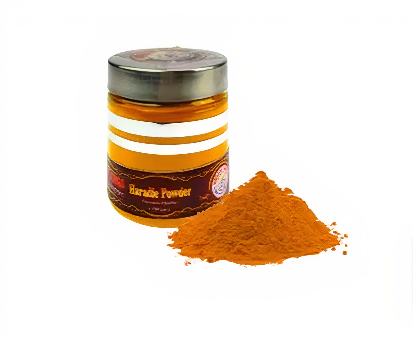 With your right ring finger, on Shiva's forehead (if you have a Shiva statue) or centrally on the Shiva Lingam/ Yantra, dab the following powders: